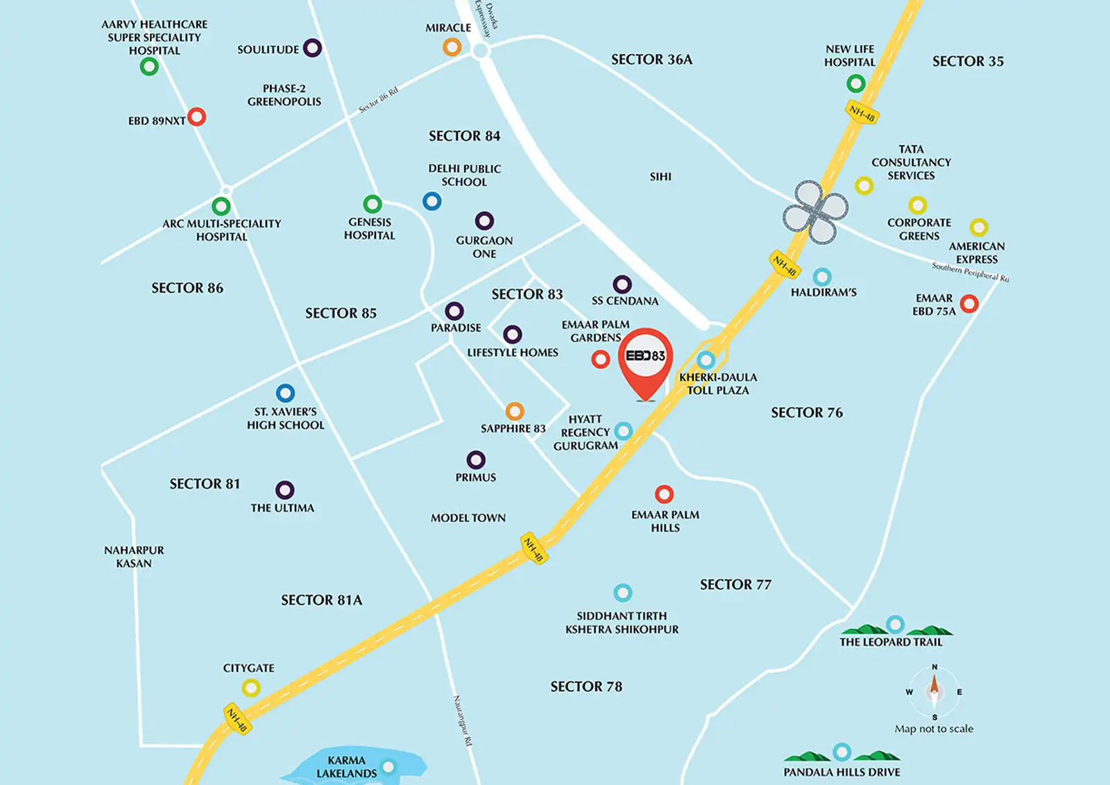 1. Strategic NH-48 Frontage: EBD 83 has direct access from NH-48, India's busiest Category-A highway, connecting Delhi with major tourist destinations like Jaipur and Ahmedabad. This makes it a high-visibility retail and business location.