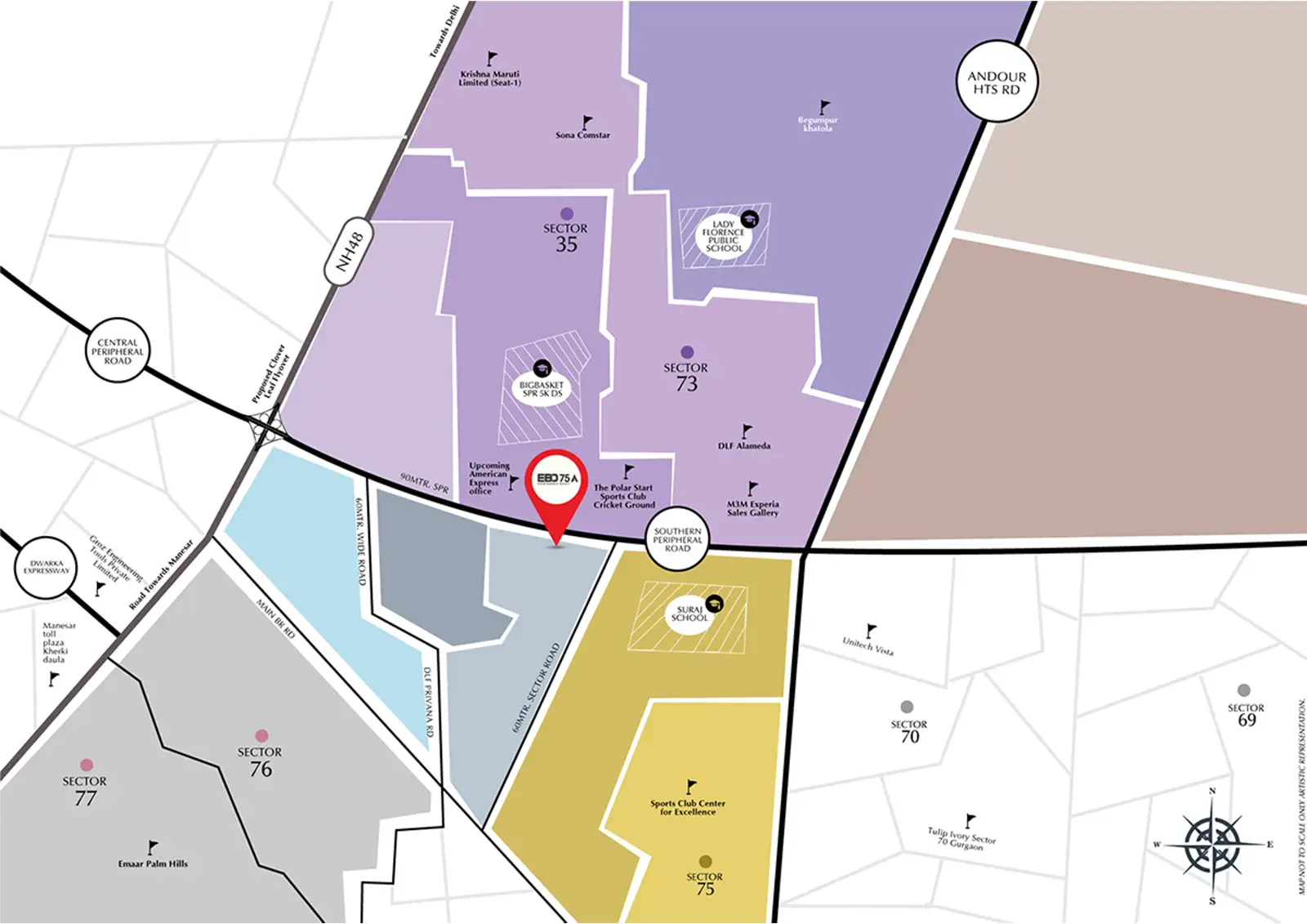1.Prime Location: Located in Sector 75A, Gurgaon, right on Southern Peripheral Road (SPR), with excellent road connectivity and visibility.