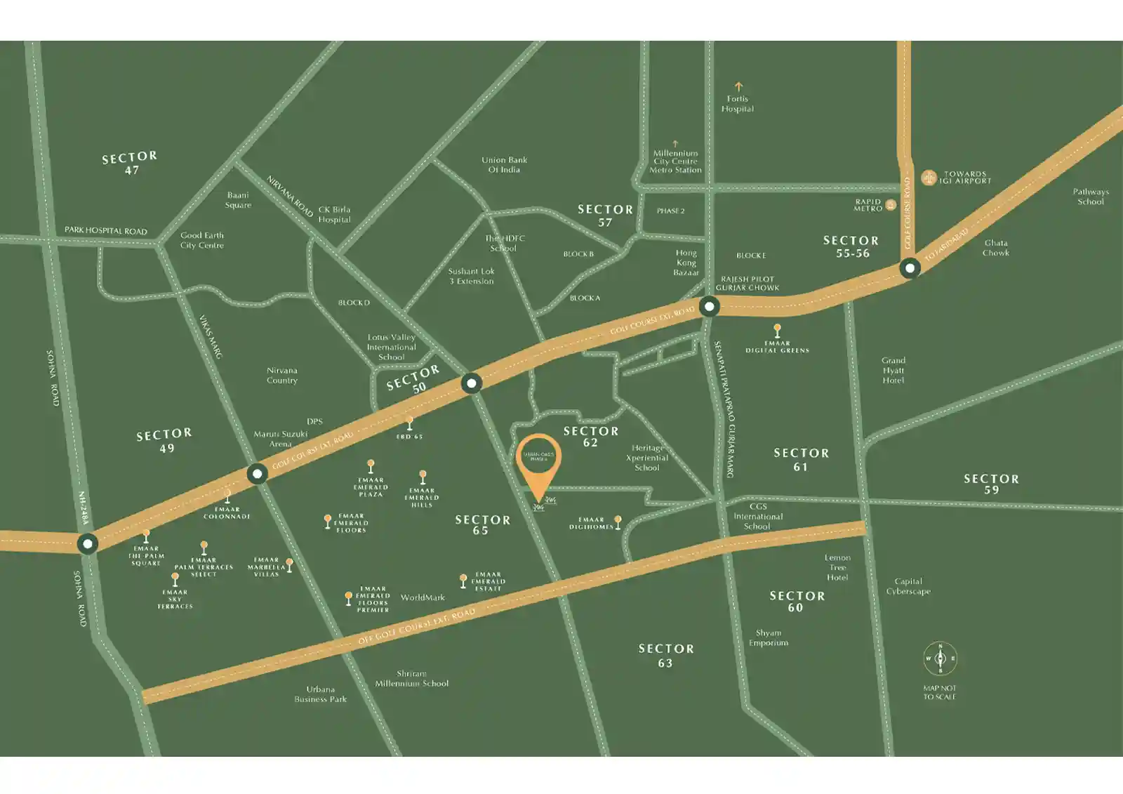 Moreover, Urban Oasis nearby landmarks include the Grand Hyatt Gurgaon, Lotus Valley International School, and Sector 55-56 Metro Station, making Emaar Urban Oasis Phase 4 a well-connected and desirable address.